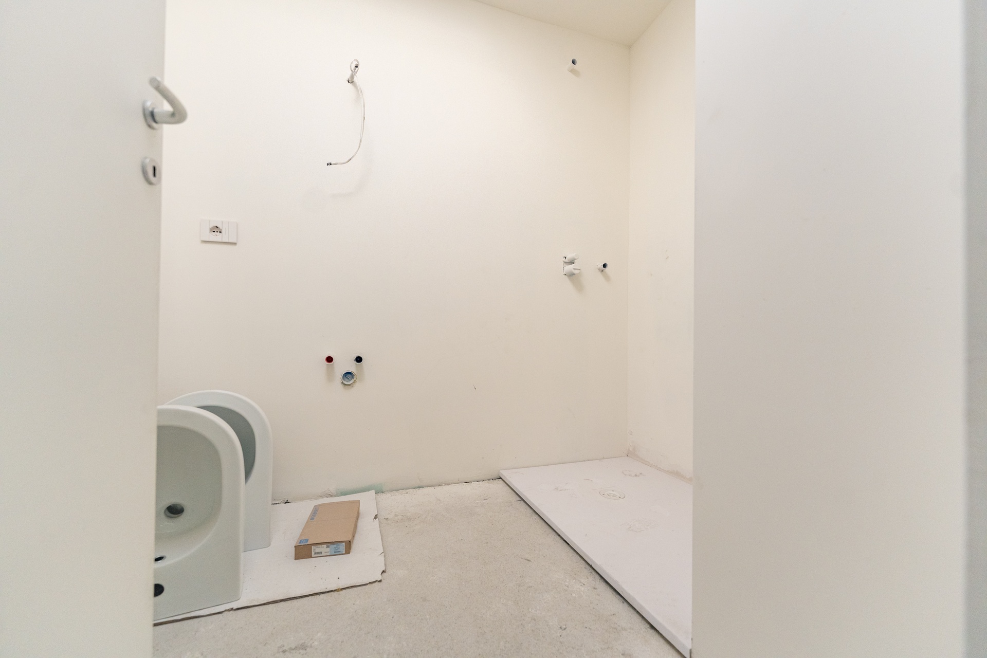 - Shower trays: Mineral, 3 cm high, made from natural mineral composites with a white gel-coated finish