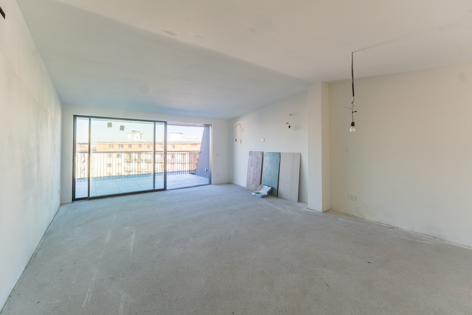 - Outdoor flooring: Light Grey concrete-effect porcelain stoneware, anti-slip and frost-resistant