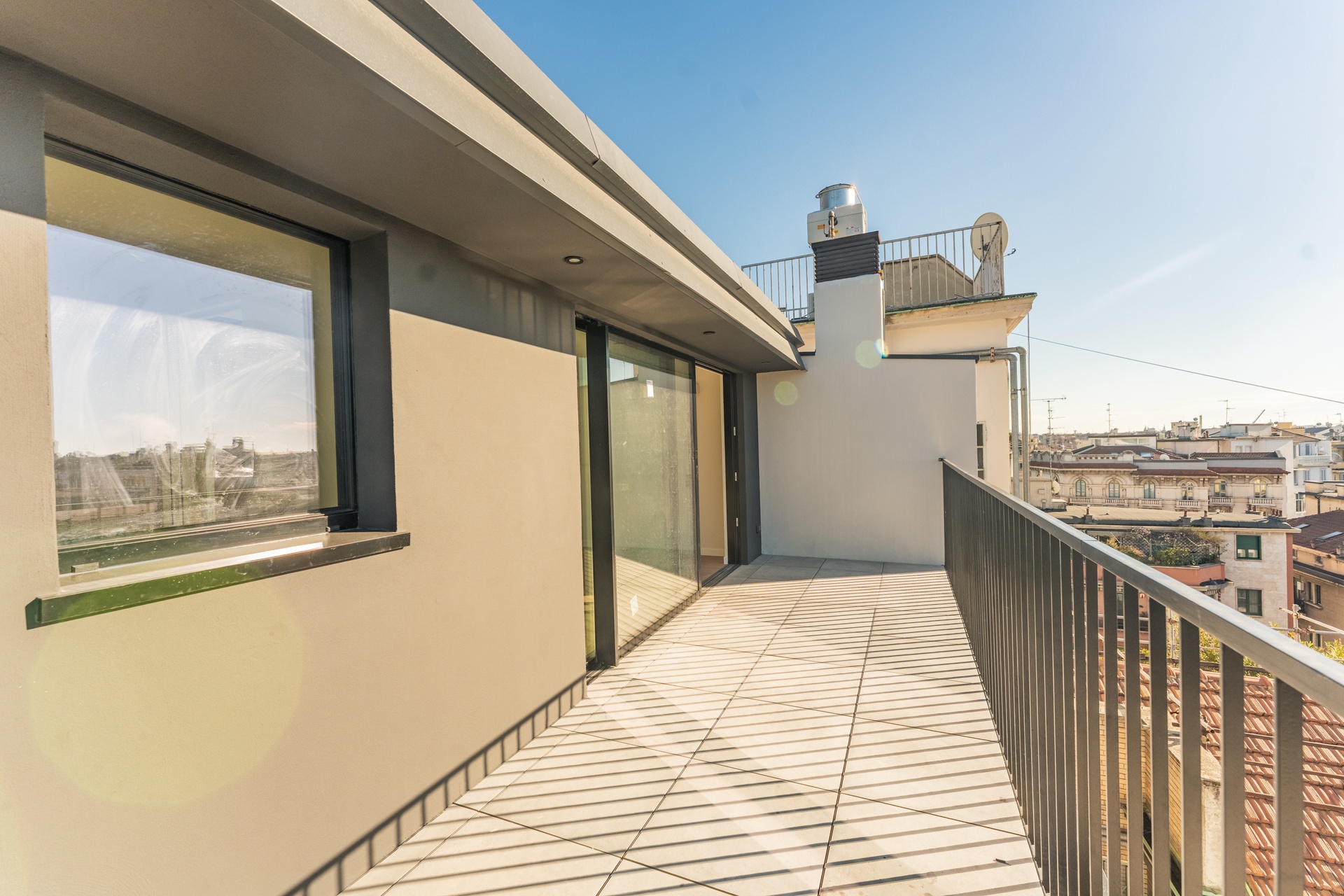Completely reconstructed with a new independent steel structure, the penthouse is crowned by an elegant French-style roof clad in gunmetal-colored sheet metal.