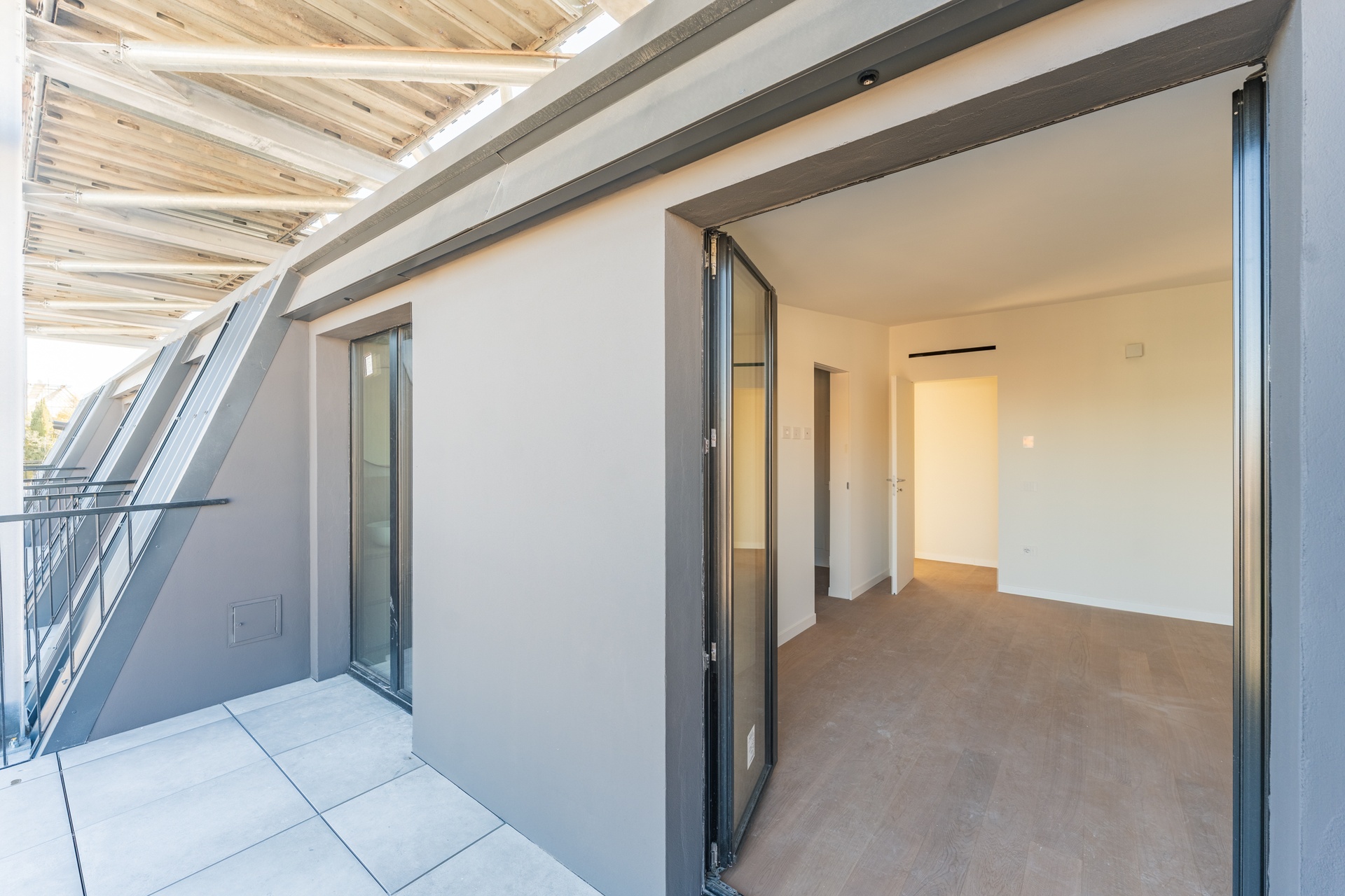 - Outdoor flooring: Light Grey concrete-effect porcelain stoneware, anti-slip and frost-resistant