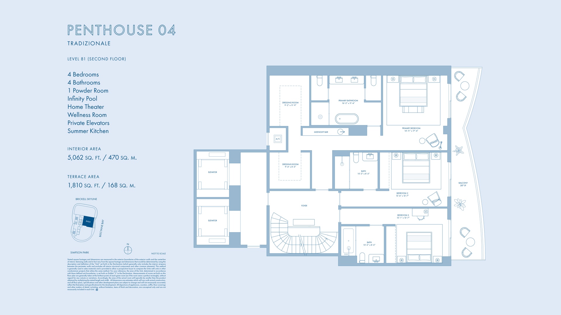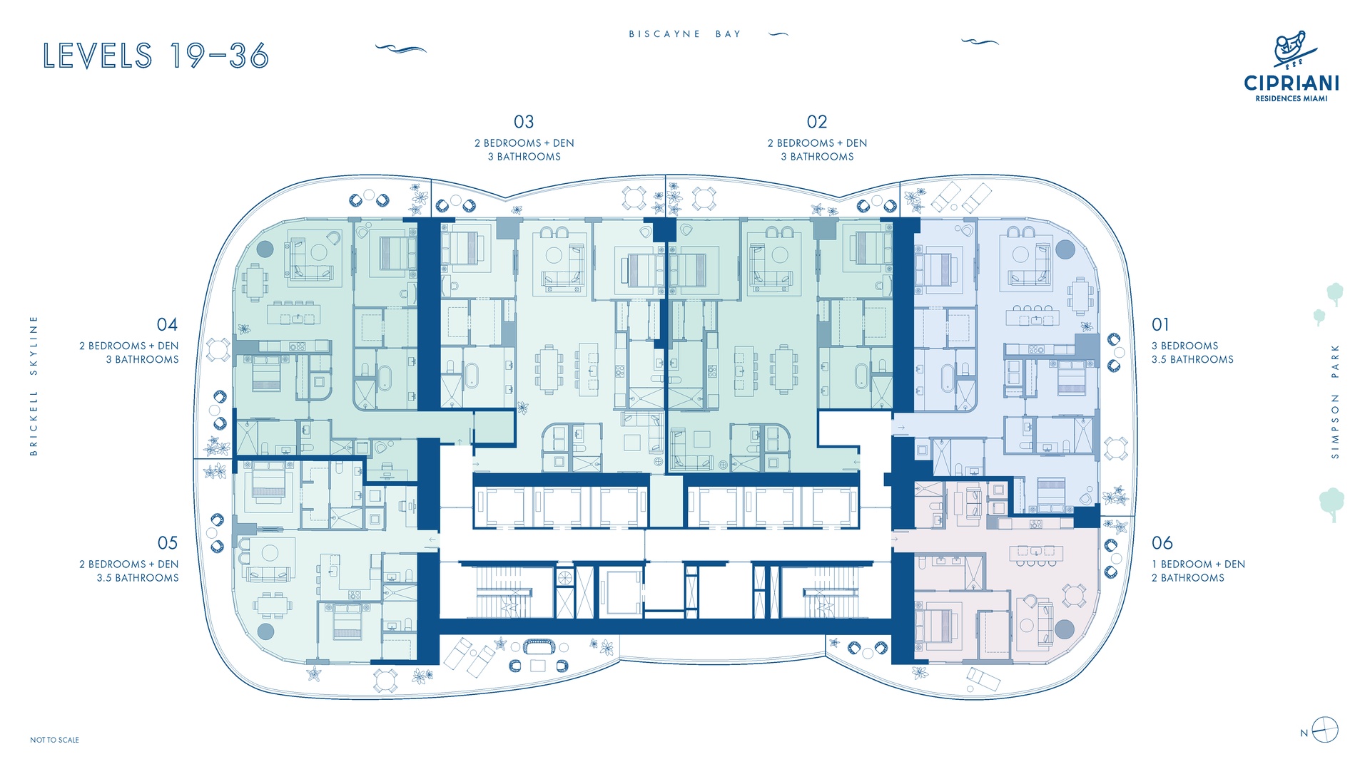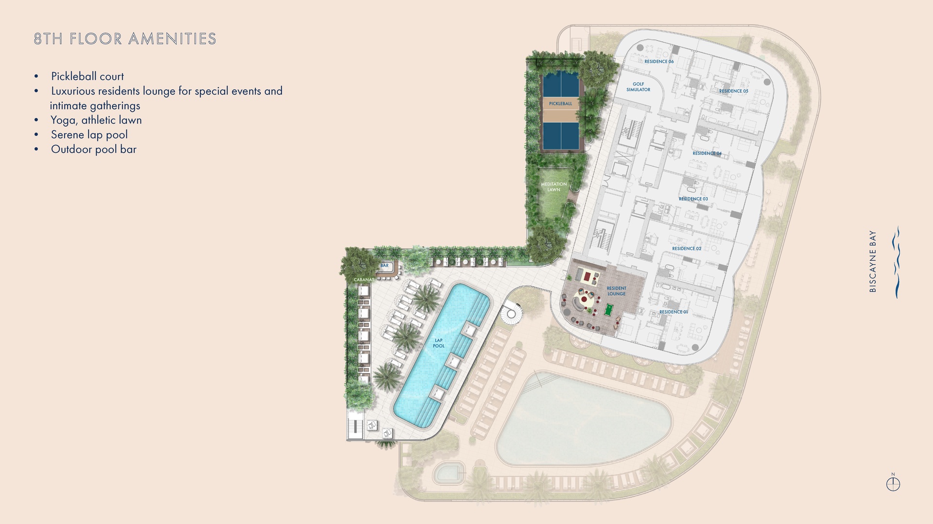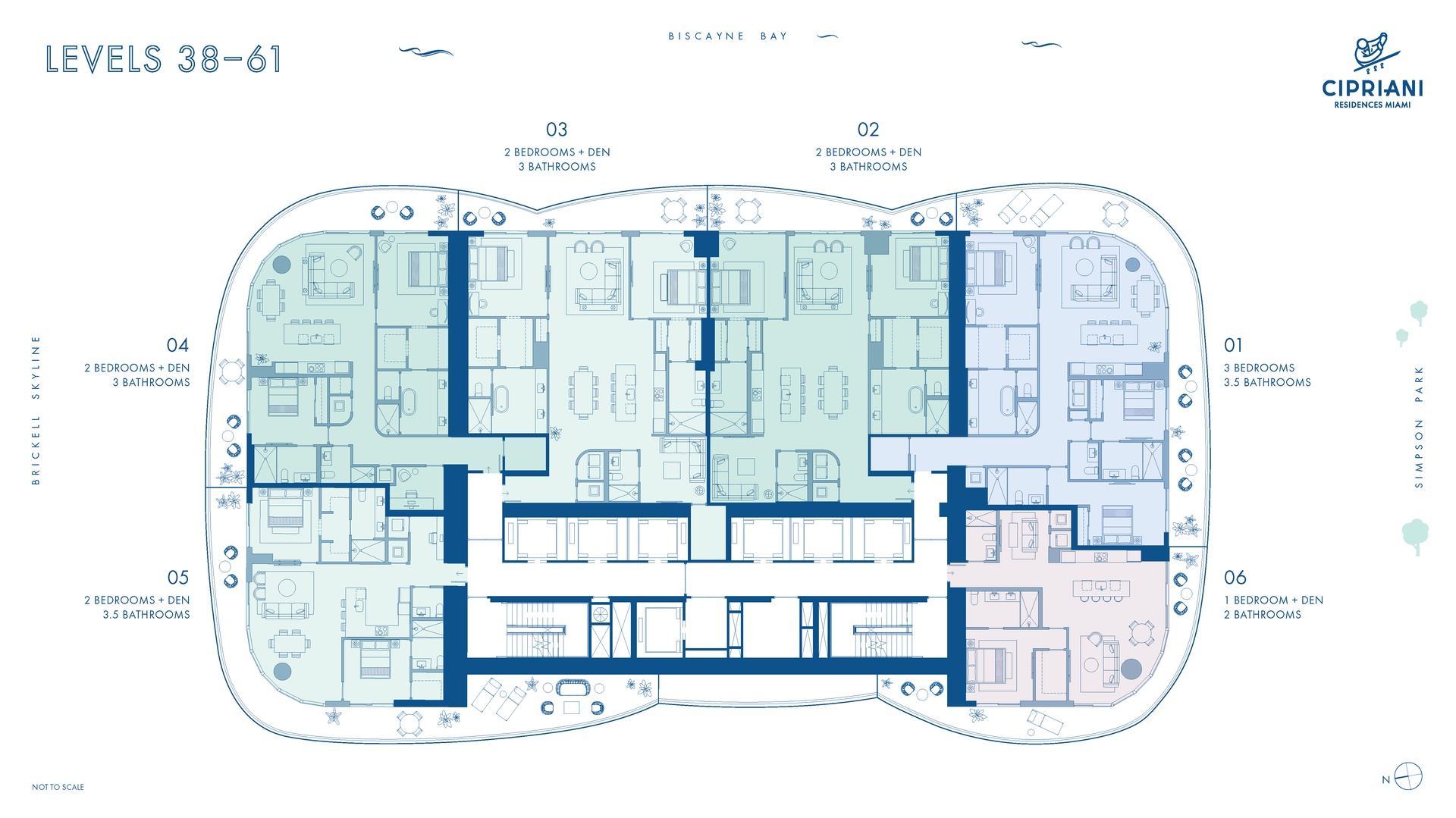 Cipriani Residences Miami will offer its residents unparalleled, resort-style amenities including an elegant porte cochère and lobby, signature private dining experiences by Cipriani, elevated resort deck with 2 swimming pools, poolside cabanas, outdoor spa and landscaped sun terrace, 4-level wellness center and lounge overlooking the Brickell skyline, holistic wellness spa with sauna and treatment rooms, salon for private beauty services, high-tech fitness center, golf simulator, pickleball court, dog park, screening room, library, children’s playroom and residents’ lounge.