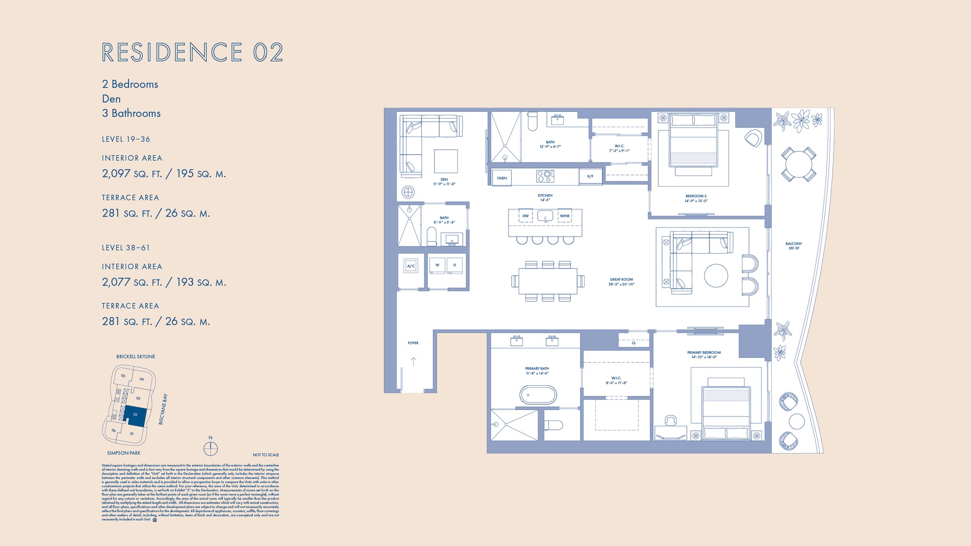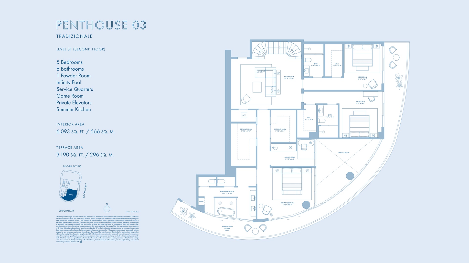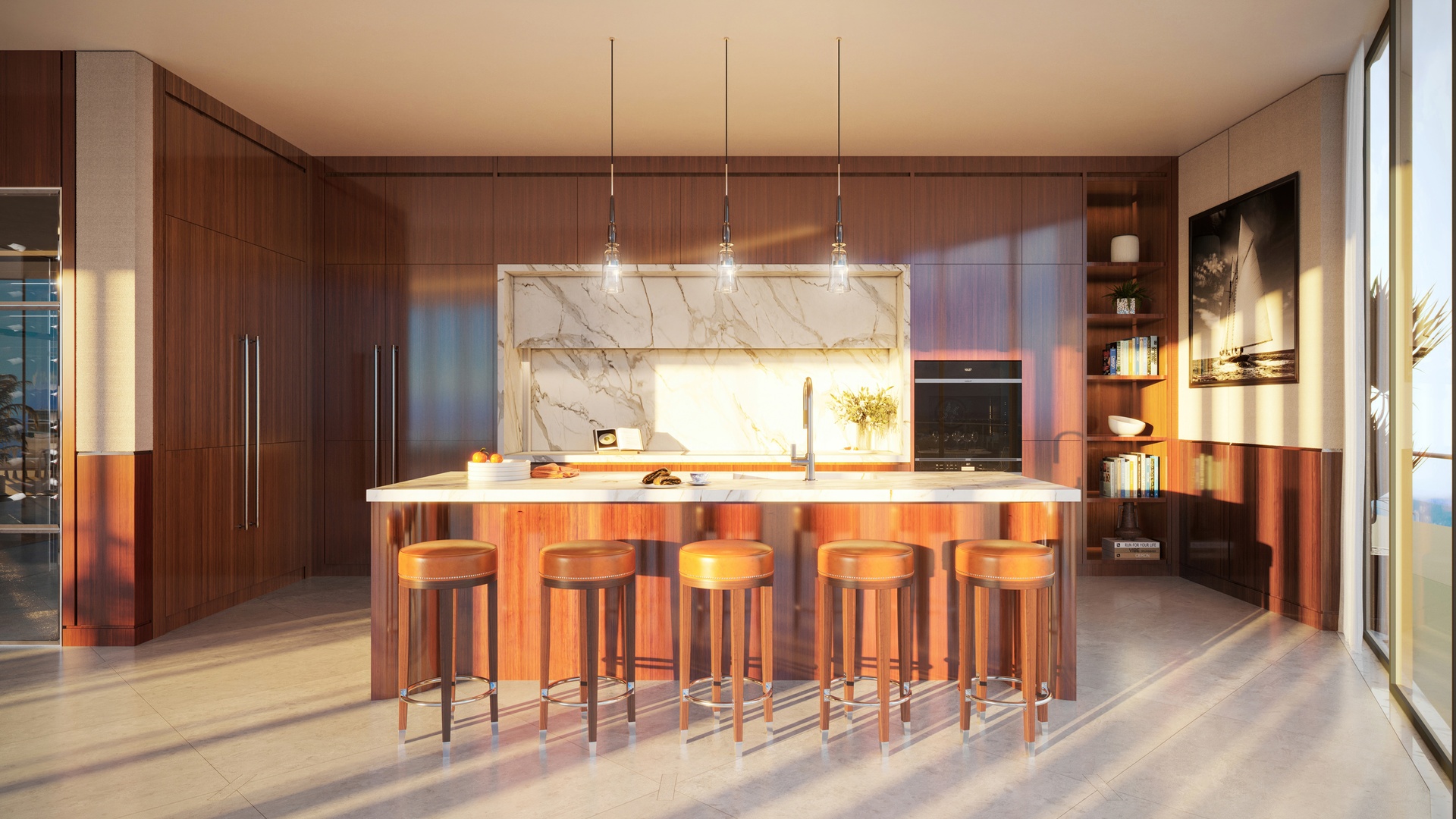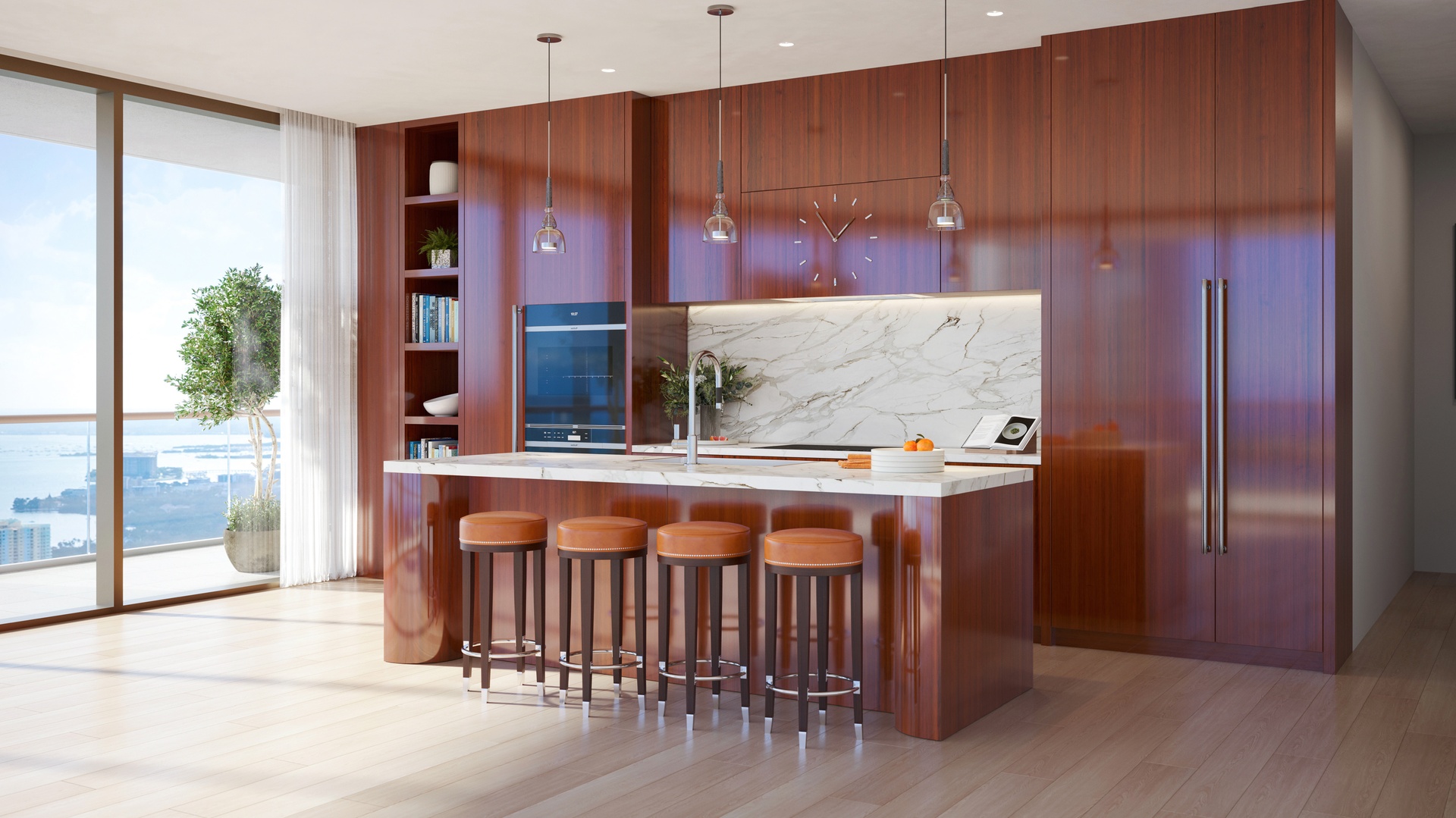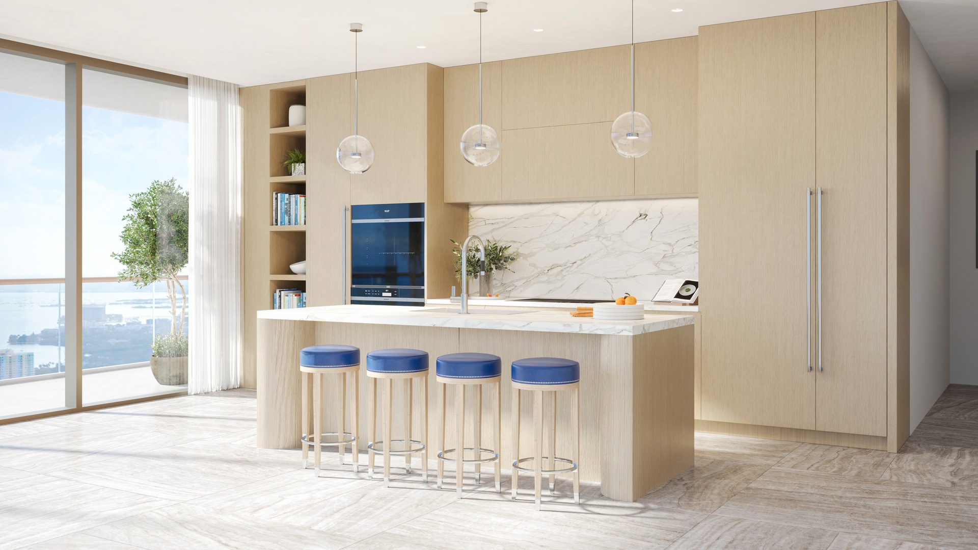Cipriani Residences in Brickell will consist of 397 luxury condos, including penthouse residences with private pools. Condos at Cipriani will boast expansive layouts with 10-foot ceilings, floor-to-ceiling windows and sliding glass doors, open eat-in kitchens with custom Italian cabinetry and high-end appliances by Wolf and Sub-Zero, Spa-like primary bathrooms with grand stand-alone bathtubs and glass-enclosed showers, spacious laundry rooms, walk-in closets, smart home technology and terraces with sweeping bay and city views.