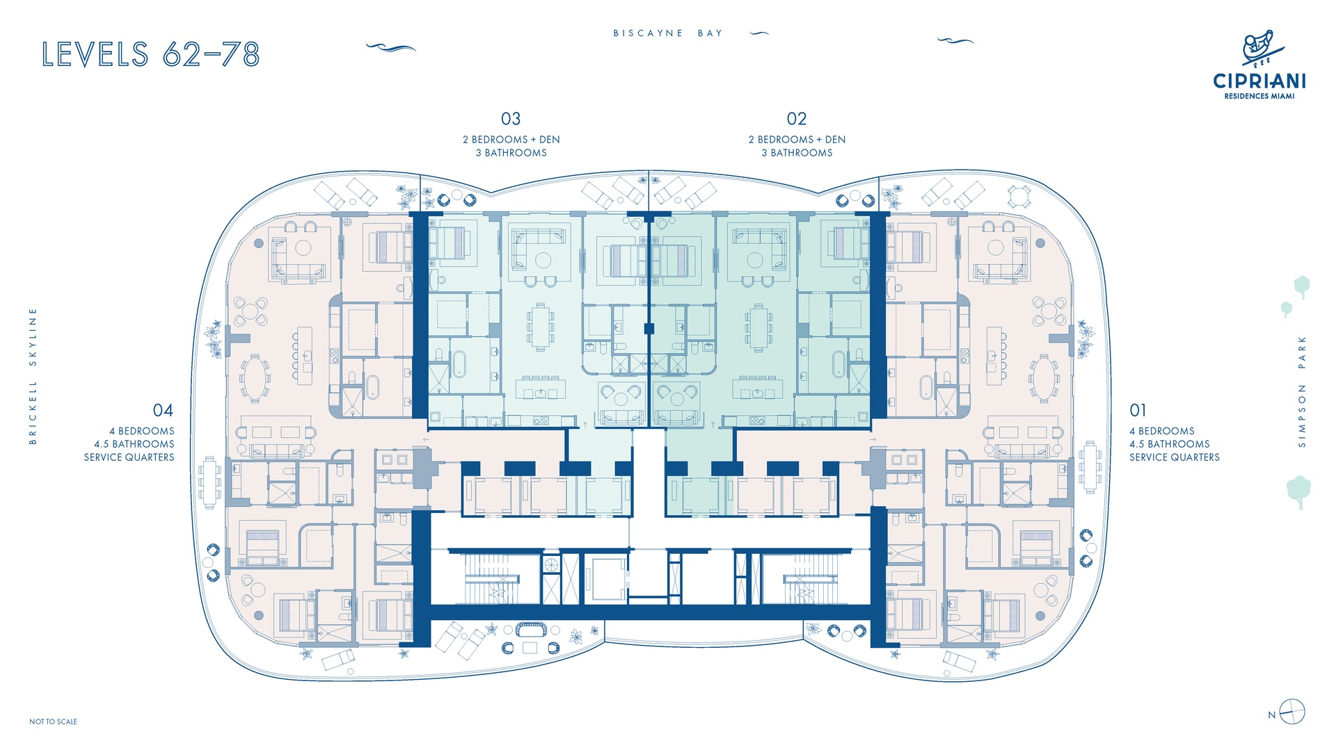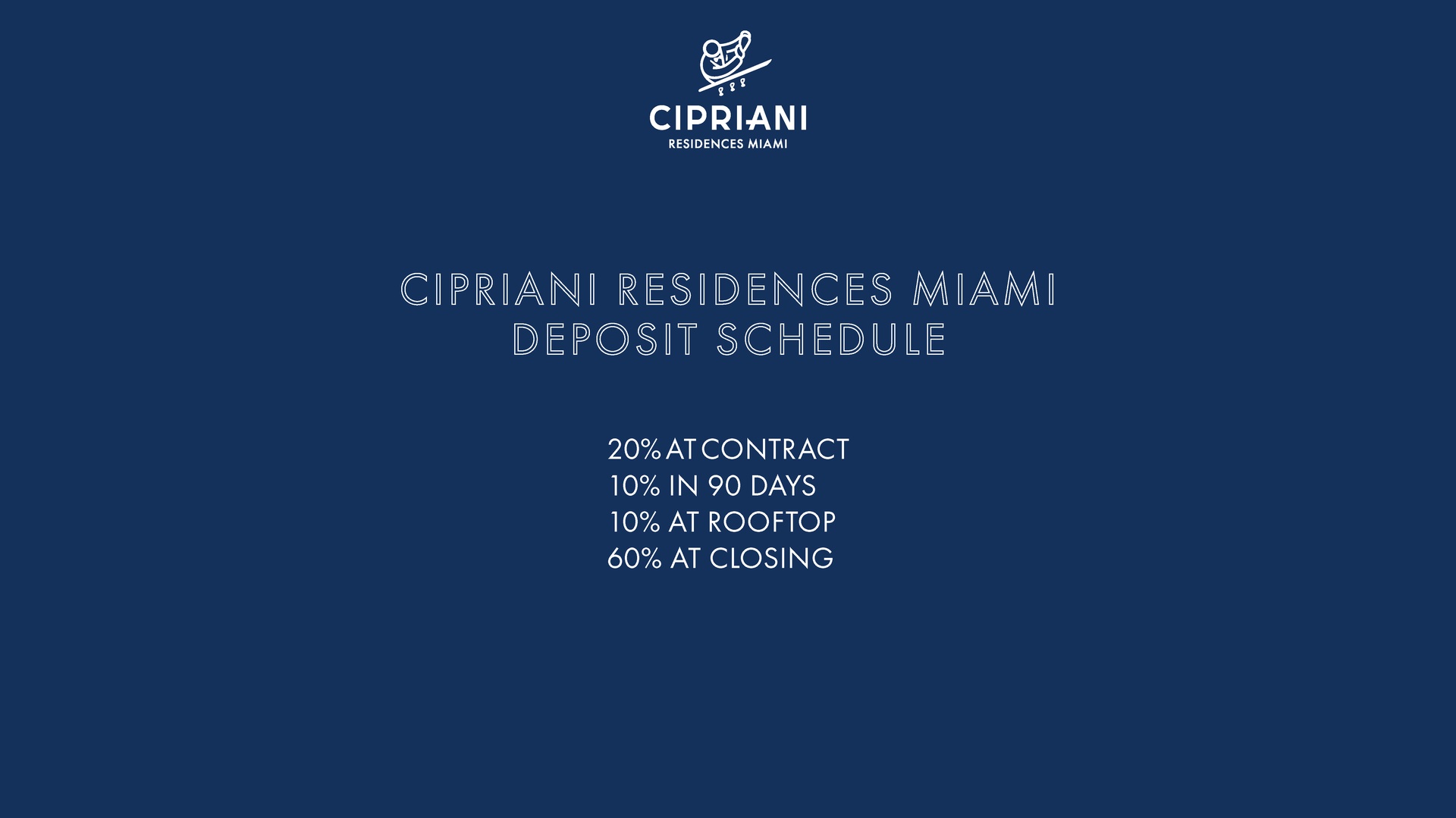 Services at Cipriani Residences will include a dedicated Director of Residences, Residential Cipriani Concierge, 24-hour catering services and in-home dining by Cipriani, poolside food and beverage services catered by Cipriani, residential services such as away-from-home maintenance, pet grooming and walking services, in-residence spa treatments, personal training services, 24-complimentary valet parking and security.